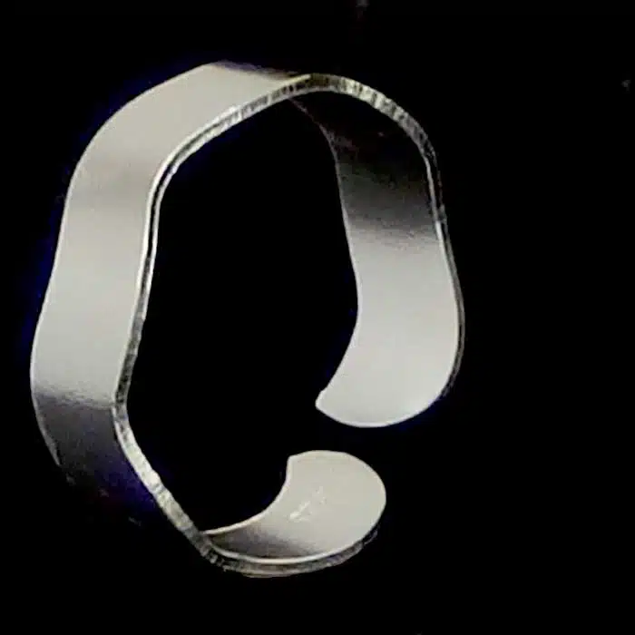 The wavy band toe ring is made from sterling silver and features a 92.5 stamp. This means it is 92.5% fine silver with no more than 7.5% of copper or other metals. This formula is internationally accepted and it gives sterling silver the hardness and the tolerance to work with. Anything higher than 92.5 would be too soft and tarnish too quickly. When you buy sterling silver from us, we can guarantee it is just that!
