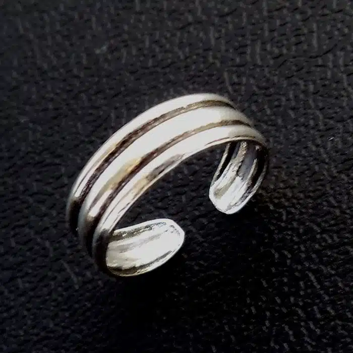 Wider Band Toe Ring is made from sterling silver 92.5. We love that it has two oxidised lines indented into the band. These toe rings are a free size, so one size fits most. Simply slightly open the toe ring and slide onto the toe next to the big toe. Make sure you do not peel on and off the toe ring, as this is sterling silver and will break, if weakened by over bending.
