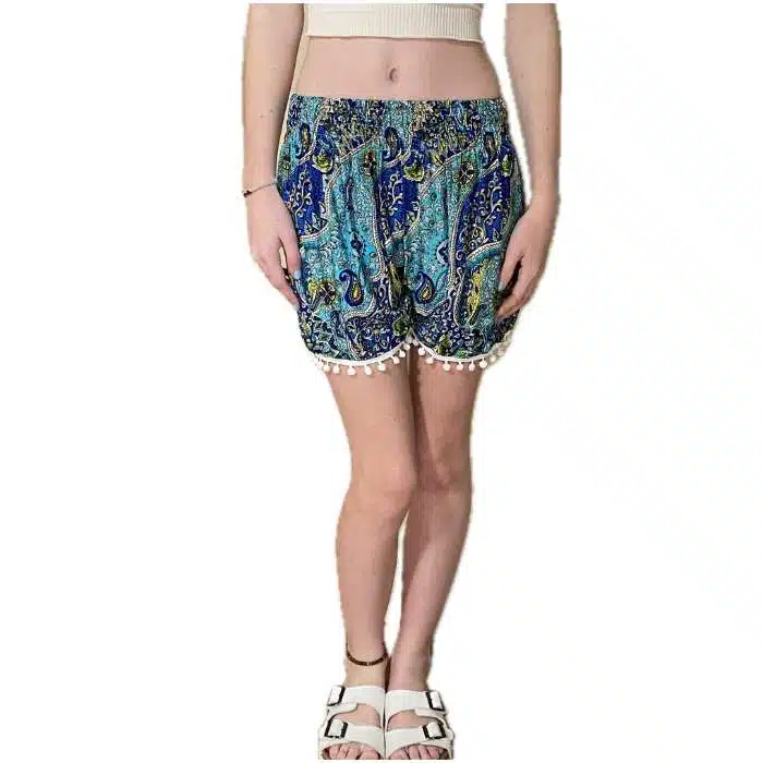 Paisley Pompom Shorts NZ are so cute and so cool to wear. Our customers love that they are not hot to wear. Sometime jean shorts can be uncomfortable in super hot weather. And they Boho girl shorts are loose and light and breezy. These Boho shorts look awesome with the pom poms all the way around the hem on the top of the leg. They are a must-have addition to any summer wardrobe.