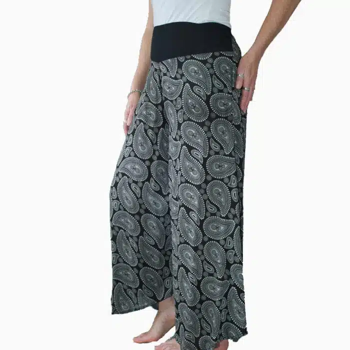 Our customers love that this pant skirt combo fits nearly all body shapes. This makes them a most forgiving and fashionable garment. Thai Pant Skirt Combo can be worn shopping, going out to the pub or cafe, on the couch, at the gym, or when doing yoga. They look great with casual jandals or dress them up with some fancy shoes. They are a very versatile and timeless addition to any wardrobe. During the cooler months, because of the roomy fit, it’s super simple and easy to keep extra warm by wearing thermals or leggings underneath. Loving these pants that are rocking out the door fast already. These are one of our most popular styles of pants and seem to sell to all ages.