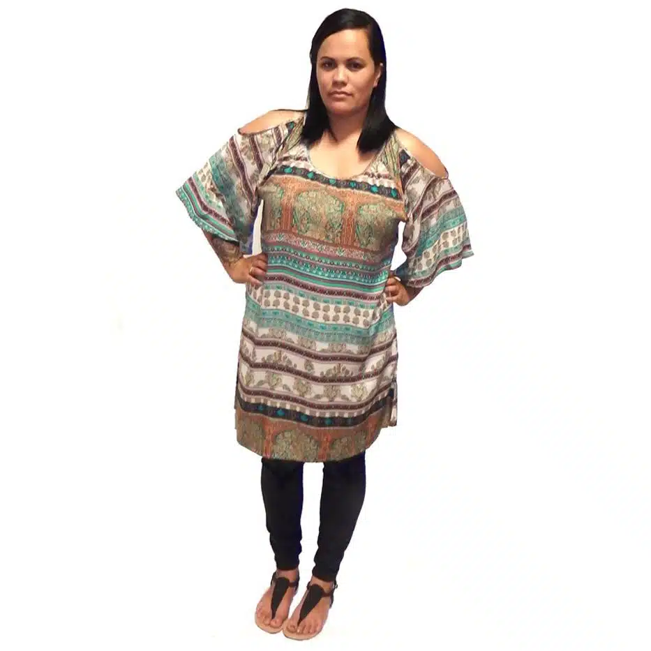 Boho Cold Shoulder Dress is a gorgeous loose summer Dress and great addition to any wardrobe. The flared sleeve and beautiful Boho patterns create a slimming effect. The wide shape fit ensures it will fit most sizes. This tunic also features cold shoulder detailing on either sleeve for extra comfort an detailing. This Boho Cold Shoulder Dress can be worn alone as a dress in the warmer weather, or with tights or jeans in the winter. Just throw on a poncho or cardigan to keep your arms warm. This cute summer dress comes in 4 patterns. Just pick your favourite, or grab all four! If you are a smaller size, this dress looks nice with a slim belt. This dress has been designed to compliment our nice features and hide things like flabby arms. We are on to it !