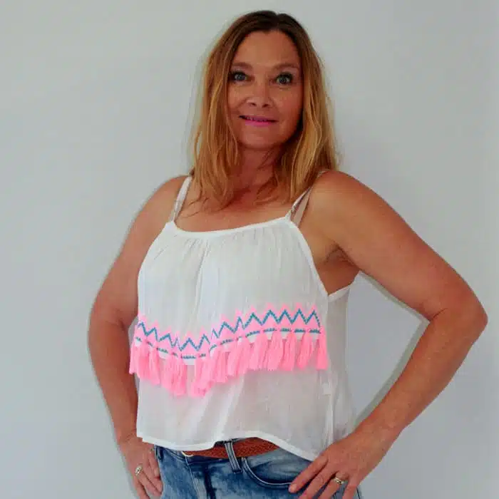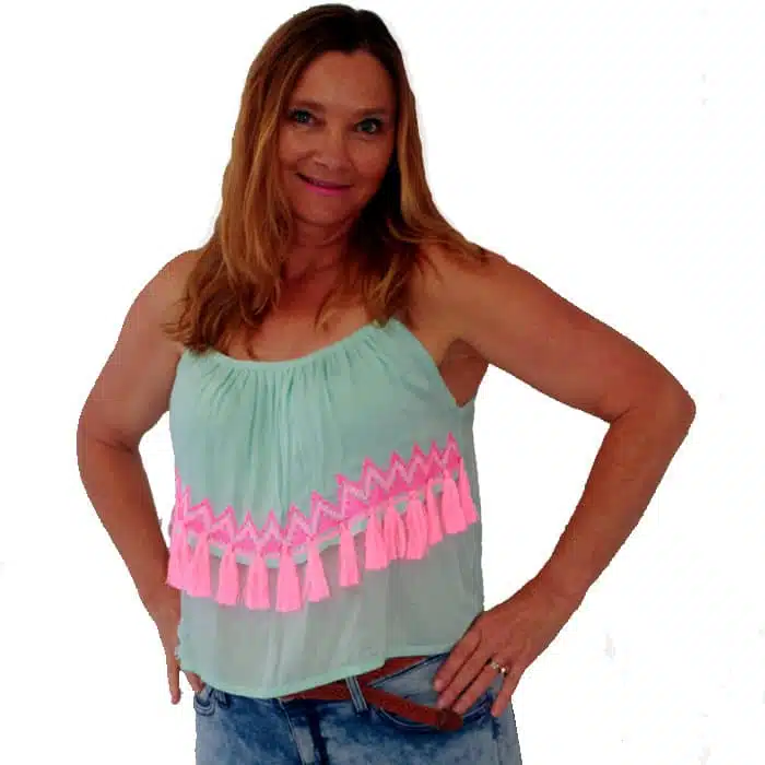 To wash this Crop Spaghetti Strap Top, simply pop it in your washing machine separately all alone by itself. Choose the delicate cycle and make sure you choose the cold option. Liquid detergent gives a great result and make sure you get it out of the washing machine and don’t leave it there overnight. Yep done that before! Not good on the dyes! You could also hand wash it-but really we are busy women and who has the time? The delicate spin cycle gets the excess water out so it is easy to line dry your garment. Warm iron and hey presto, your new clothing is washed and ready. I have not noticed any colour running with the tassels or embroidery or any shrinkage-I personally love this top