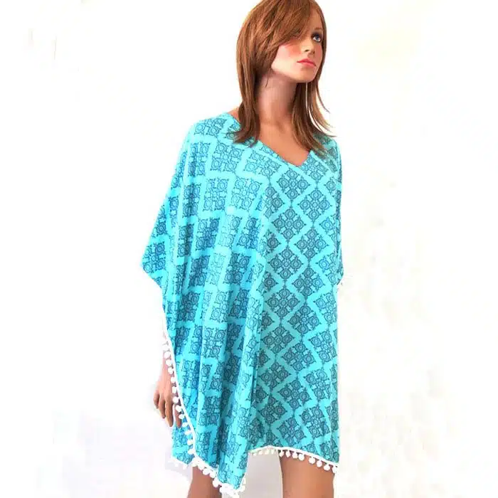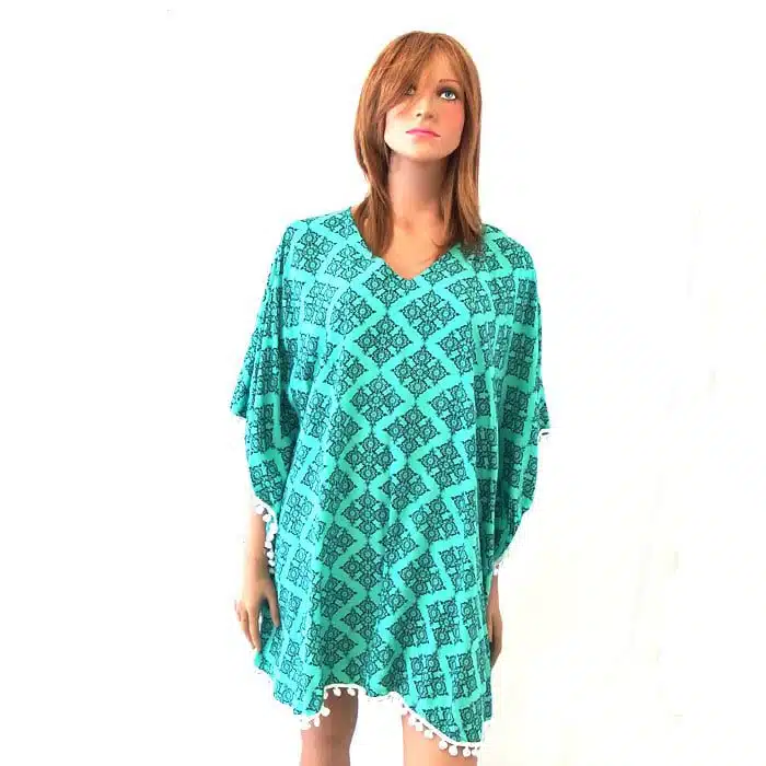 To wash this Pom Pom Poncho top, simply pop it in your washing machine separately all alone by itself. Choose the delicate cycle and make sure you choose the cold option. Liquid detergent gives a great result and make sure you get it out of the washing machine and don’t leave it there overnight. Yep done that before! Not good on the dyes! You could also hand wash it-but really we are busy women and who has the time? The delicate spin cycle gets the excess water out so it is easy to line dry your garment. We prefer the delicate cycle over the regular cycle, to take better care of all the sweet pom poms.