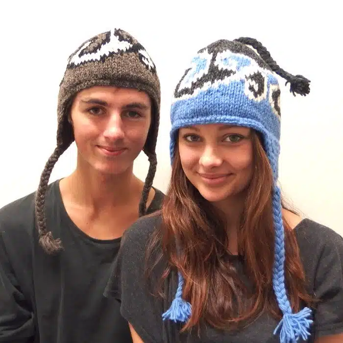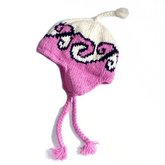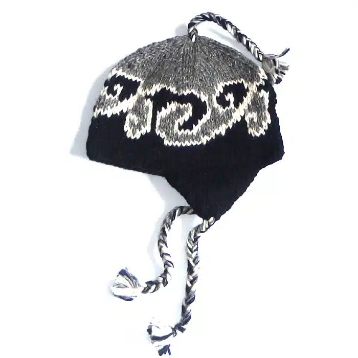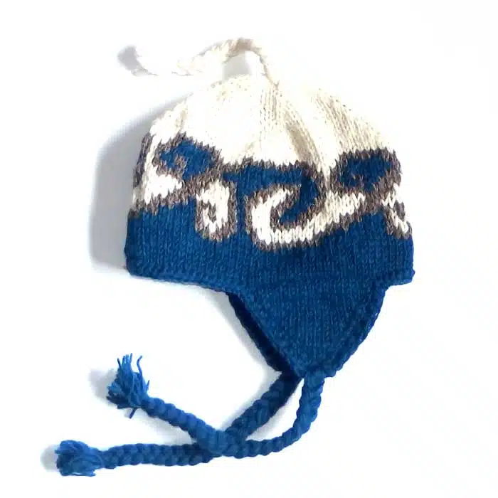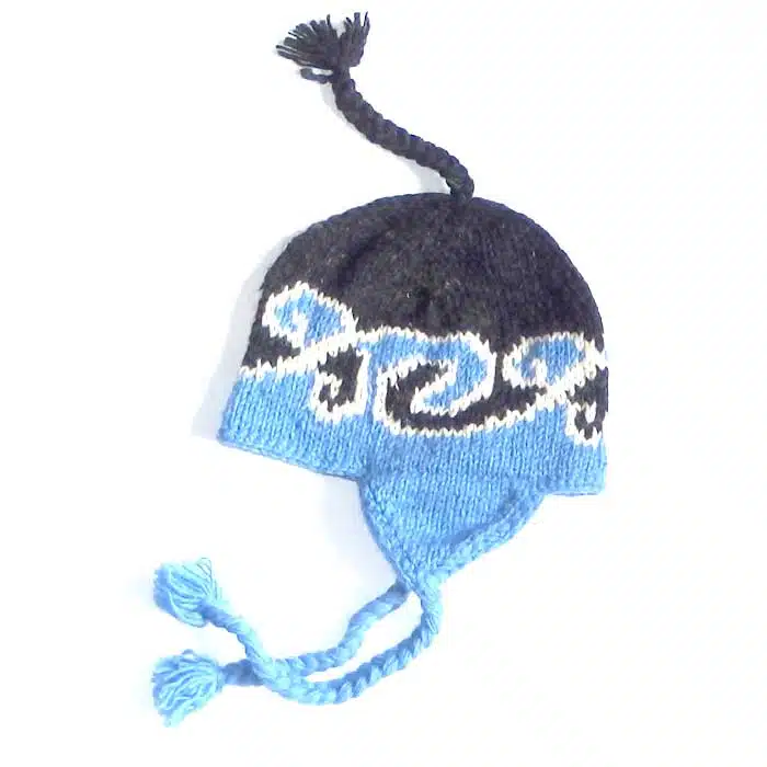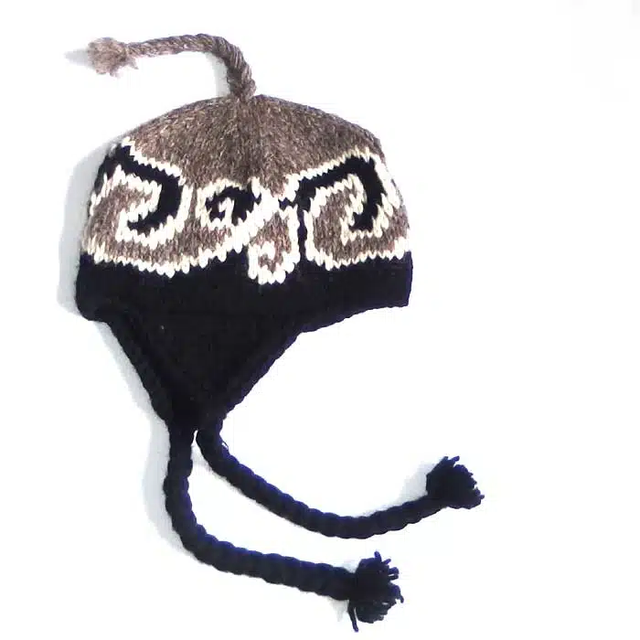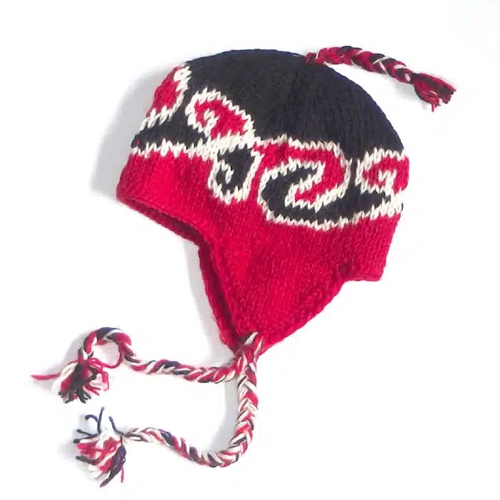 Earflap Hat Maori Koru is a warm woollen beanie hand knitted in Nepal using New Zealand wool. This hat has long ear flaps on either side to keep not only your head warm, but your ears will be toasty too. There are many colours to choose from. Earflap Hat Maori Koru also has the option of lined or unlined. The lined hat is warmer. The un lined is cheaper. Ear flap hats are great for the outdoors especially in windy conditions as they can be tied securely around the neck.
