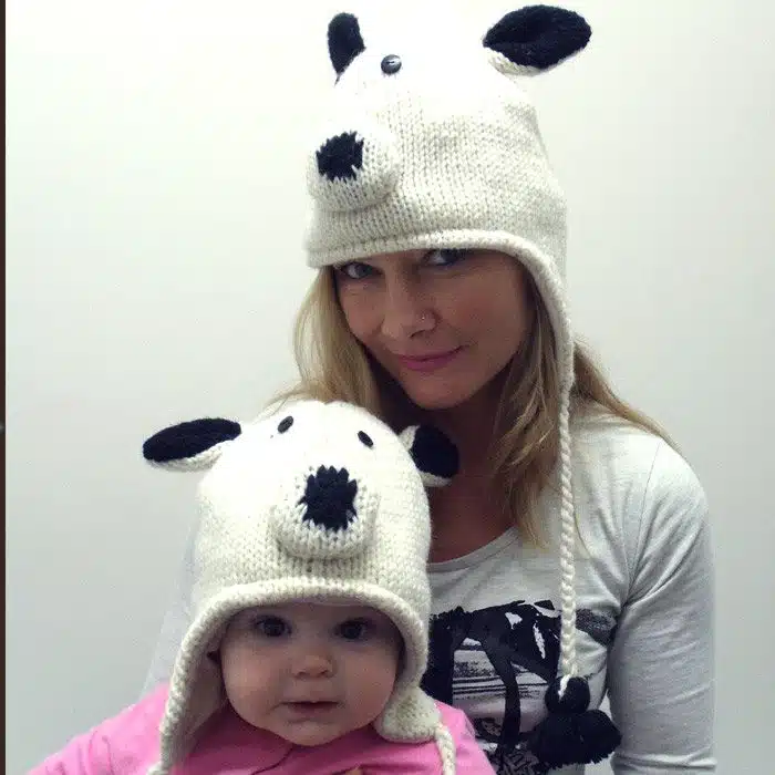 Polar bear Animal hat in our very own New Zealand wool. It is fleece lined so it wont be prickly and is extra warm! Great for the outdoors or just a bit of fun. It is an ear flap style so it can be tied up around your chin for when your out in the wind. Available in child’s and adult size.