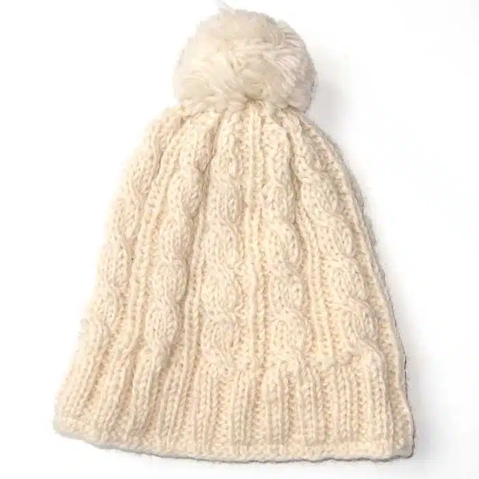 Pom pom hat is made of New Zealand wool and great for a guy or a gal. This pom pom hat is fleece lined for extra warmth and comfort. All of our wool hats are lovingly hand knitted with New Zealand wool by the Nepalese people. These hats are all 100% pure wool, to ensure maximum heat for your head! The Pom pom hat comes in a big range of different colours so just pick your favourite colour. You can wear it folded up at the bottom to give it a contrast and make is less high on the head. Or wear it as is. This style is trending at the moment.