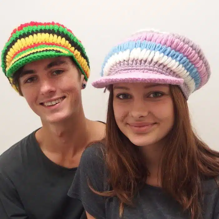 Star hat pure wool is hand knitted with New Zealand wool and has a star pattern on the top on the head. It also has a small peak for added coolness. This star hat pure wool is unisex and popular. There is enough room for some of your dreadlocks in the back. If you are a star you so need a star hat! This Wool baker style star hat is a cool style and suits many different shaped faces. It is not fleece lined but the wool is thick and double layered for extra warmth.
